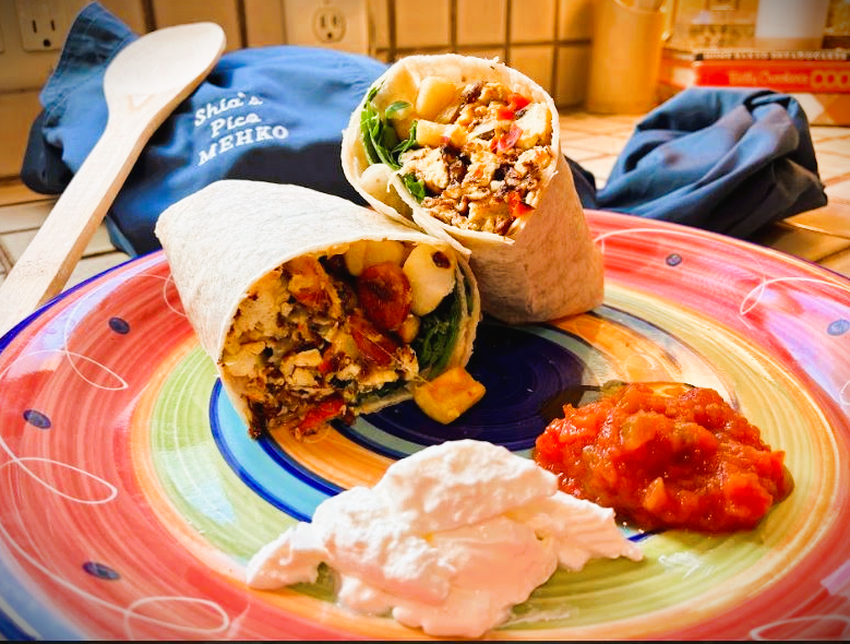 Tofu, Cumin, Turmeric, Red / Green Peppers, Onion, Spinach, Salt, Pepper, Garlic, Salt & Pepper, Flour Tortilla