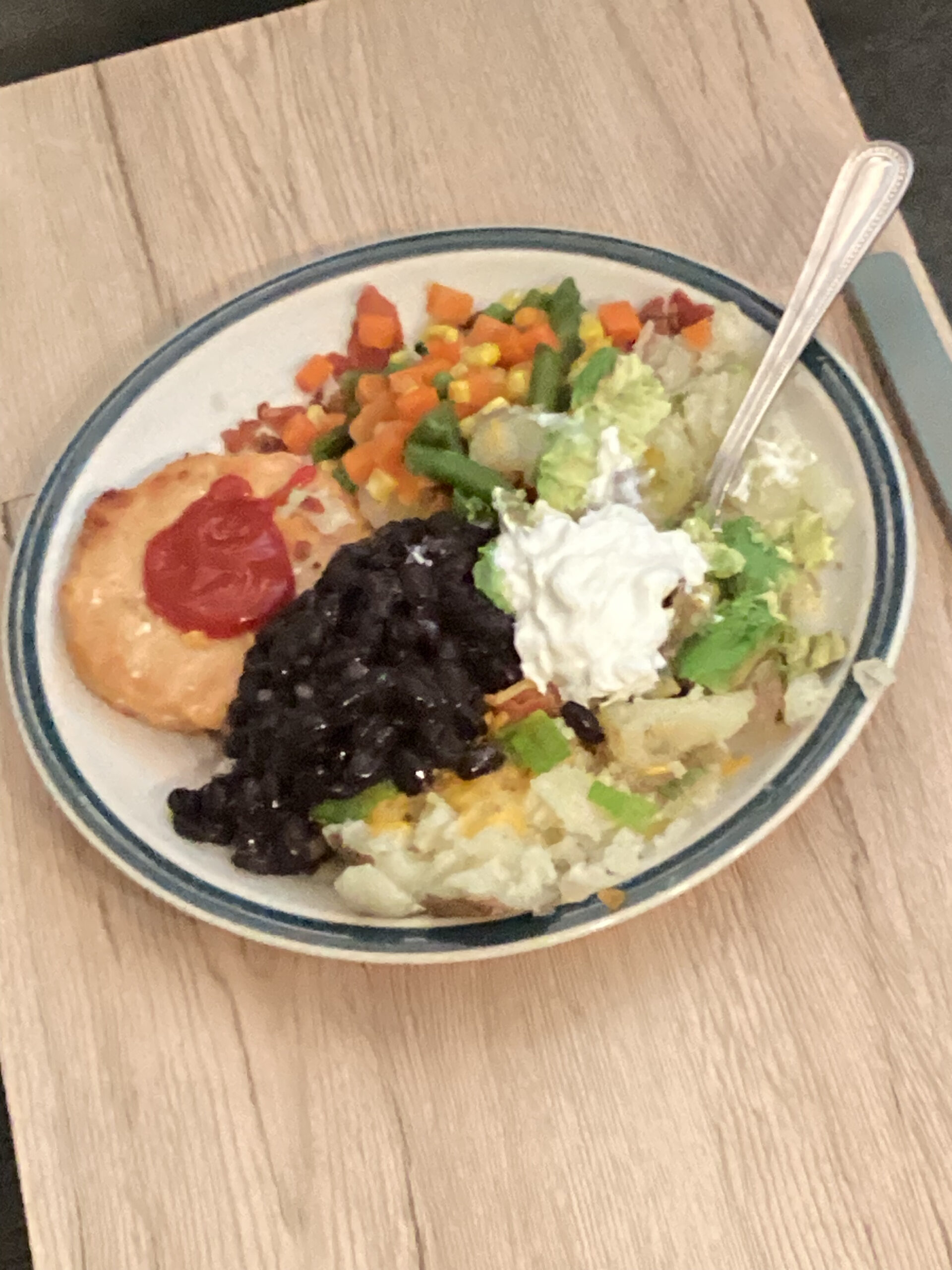 Comes with everything inside, that’s potato, egg*, spinach, and your choice of protein.